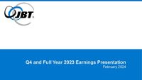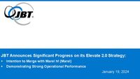 Jan 19, 2024 JBT Announces Intention to Pursue a Merger with Marel; Also Announces Strong Operational Performance