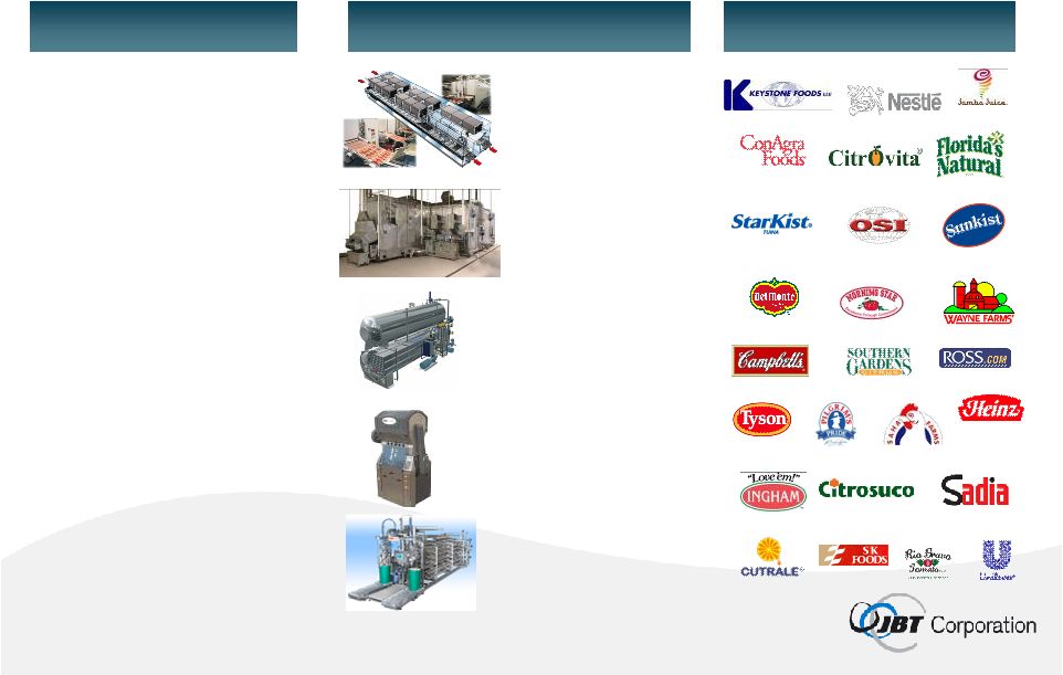 ![]() 11 sterilize more than 50% of the world’s shelf stable canned foods squeeze more than 75% of the world’s citrus juices freeze more than 50% of the world’s frozen foods load 70% of the world’s overnight express packages board 75% of U.S. passengers Market Leader with Blue Chip Customer Base Our Systems: |
