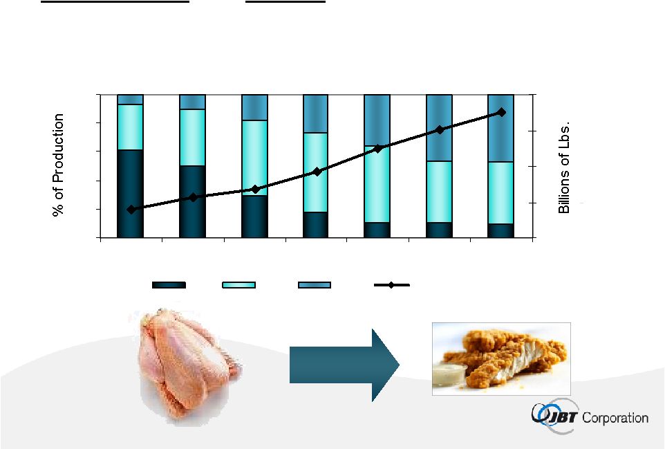 ![]() 20 Convenience and Choice Drive Demand in Developed Markets U.S. Poultry Production 0% 20% 40% 60% 80% 100% 1975 1980 1985 1990 1995 2000 2005 0 10 20 30 40 Whole Cut-Up Further Lbs of Broilers Source: National Chicken Council |