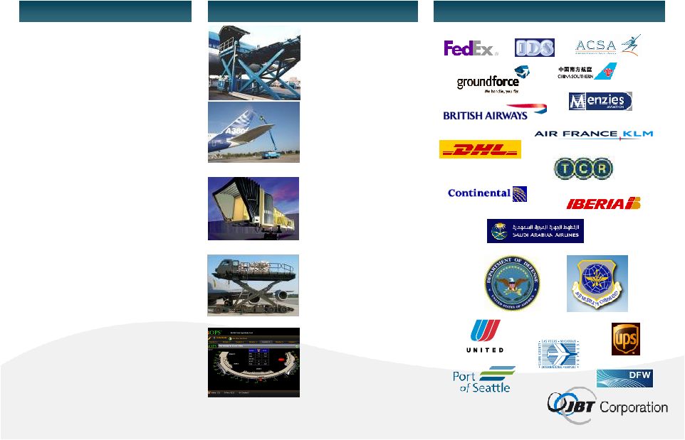 ![]() 22 Ground Support Maintaining and monitoring facilities and equipment Passenger boarding Air and power supply Gate Equipment Container and palletized cargo loading Military Equipment Pushback/Towing Aircraft Deicing Container loading Cargo transporting Baggage loading Airport Services Technologies Applications Customers #1 or #2 in Core Product Offerings |