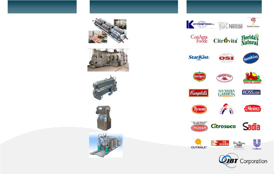 ![]() 7 sterilize more than 50% of the world’s shelf stable canned foods squeeze more than 75% of the world’s citrus juices freeze more than 50% of the world’s frozen foods load 70% of the world’s overnight express packages board 75% of U.S. passengers Market Leader with Blue Chip Customer Base Our Systems: |