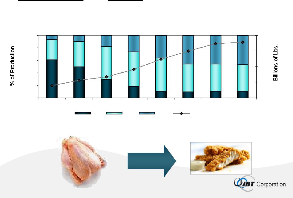 ![]() 15 Convenience and Choic Drive Demand in Developed Markets U.S. Poultry Production Source: National Chicken Council 0% 20% 40% 60% 80% 100% 1975 1980 1985 1990 1995 2000 2005 2007 0 10 20 30 40 Whole Cut-Up Further Lbs of Broilers Broiler Production = 4.8% CAGR Further Process = 6.1% CAGR e |