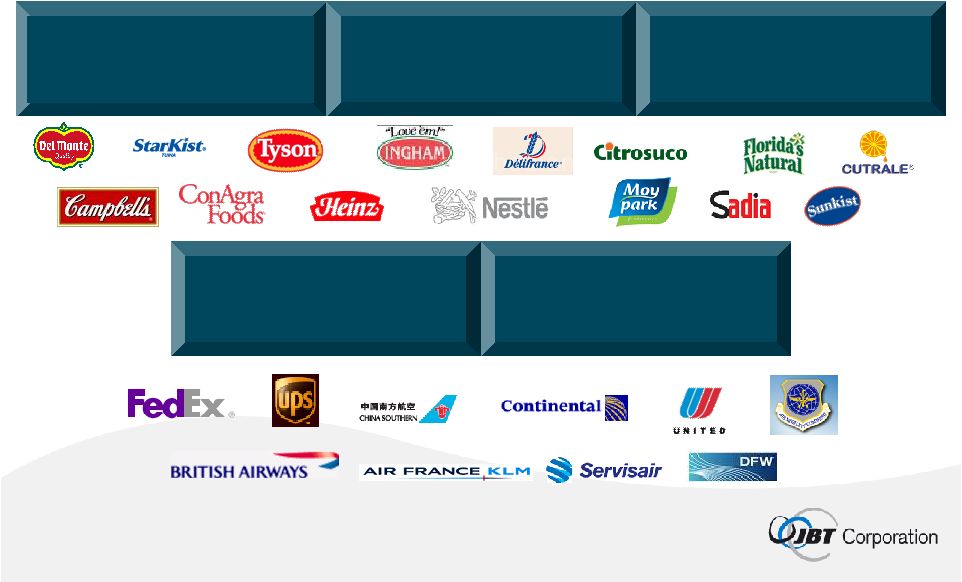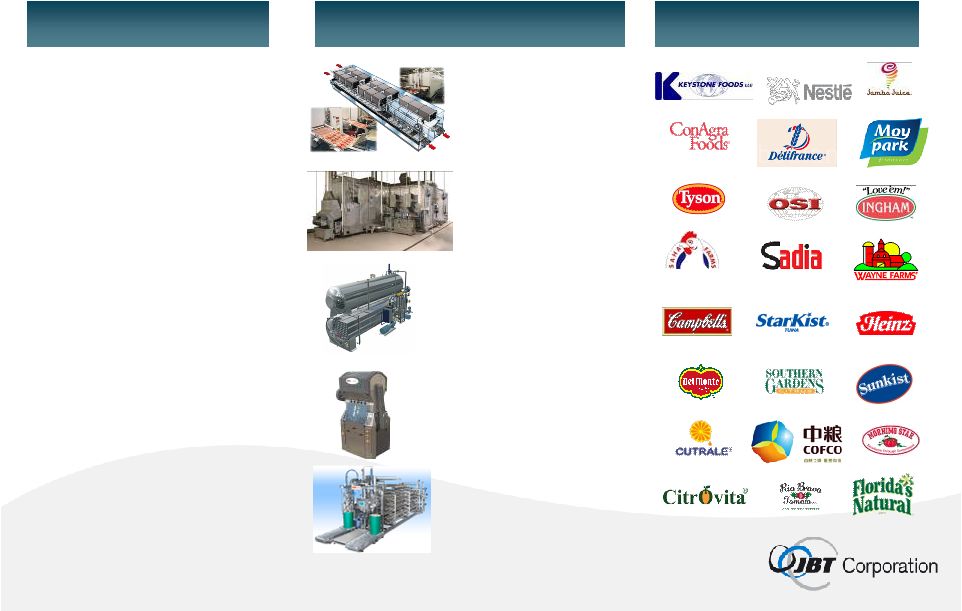 ![]() 7 sterilize more than 50% of the world’s shelf stable canned foods squeeze more than 75% of the world’s citrus juices freeze more than 50% of the world’s frozen foods load 70% of the world’s overnight express packages board 75% of U.S. passengers Market Leader with Blue Chip Customer Base Our Systems: |