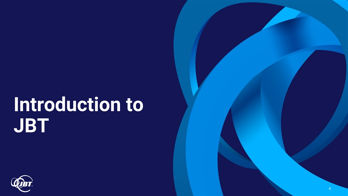 Forward-Looking and Non-GAAP Statements This presentation contains forward-looking statements as defined in the Private Securities Litigation Reform Act of 1995. Forward-looking statements are information of a non-historical nature and are subject to risks and uncertainties that are beyond JBT’s ability to control. These forward-looking statements include, among others, statements relating to our business and our results of operations, a potential transaction with Marel, our strategic plans, our restructuring plans and expected cost savings from those plans, and our liquidity. The factors that could cause our actual results to differ materially from expectations include, but are not limited to, the following factors: the occurrence of any event, change or other circumstances that could give rise to the termination or abandonment of the voluntary takeover offer to acquire all issued and outstanding shares of Marel (the “Offer”); the expected timing and likelihood of completion of the proposed transaction with Marel, including the timing, receipt and terms and conditions of any required governmental and regulatory approvals for the Offer that could reduce anticipated benefits or cause the parties to abandon the transaction; the risk that Marel and/or JBT may not be able to satisfy the conditions to the Offer in a timely manner or at all; the risk that the Offer and its announcement could have an adverse effect on the ability of JBT and Marel to retain customers and retain and hire key personnel and maintain relationships with their suppliers and customers, and on their operating results and businesses generally; the risk that problems may arise in successfully integrating the businesses of Marel and JBT, which may result in the combined company not operating as effectively and efficiently as expected; the risk that the combined company may be unable to achieve cost-cutting synergies or that it may take longer than expected to achieve those synergies; fluctuations in our financial results; unanticipated delays or accelerations in our sales cycles; deterioration of economic conditions, including impacts from supply chain delays and reduced material or component availability; inflationary pressures, including increases in energy, raw material, freight and labor costs; disruptions in the political, regulatory, economic and social conditions of the countries in which we conduct business; changes to trade regulation, quotas, duties or tariffs; fluctuations in currency exchange rates; changes in food consumption patterns; impacts of pandemic illnesses, food borne illnesses and diseases to various agricultural products; weather conditions and natural disasters; the impact of climate change and environmental protection initiatives; acts of terrorism or war, including the ongoing conflicts in Ukraine and the Middle East; termination or loss of major customer contracts and risks associated with fixed-price contracts, particularly during periods of high inflation; customer sourcing initiatives; competition and innovation in our industries; our ability to develop and introduce new or enhanced products and services and keep pace with technological developments; difficulty in developing, preserving and protecting our intellectual property or defending claims of infringement; catastrophic loss at any of our facilities and business continuity of our information systems; cyber-security risks such as network intrusion or ransomware schemes; loss of key management and other personnel; potential liability arising out of the installation or use of our systems; our ability to comply with U.S. and international laws governing our operations and industries; increases in tax liabilities; work stoppages; fluctuations in interest rates and returns on pension assets; a systemic failure of the banking system in the United States or globally impacting our customers’ financial condition and their demand for our goods and services; availability of and access to financial and other resources; the risk factors discussed in our proxy statement/prospectus filed pursuant to Rule 424(b) under the Securities Act of 1933, as amended (the “Securities Act”), on June 25, 2024 (the “Proxy Statement/Prospectus”), forming part of the Registration Statement on Form S-4 (File No. 333-279438) (the “Registration Statement”), initially filed by us on May 15, 2024 and declared effective on June 25, 2024; and other factors described under the captions “Risk Factors” and “Management’s Discussion and Analysis of Financial Condition and Results of Operations” in JBT’s most recent Annual Report on Form 10-K filed with the U.S. Securities and Exchange Commission (the “SEC”) and in any subsequently filed Quarterly Reports on Form 10-Q. JBT cautions shareholders and prospective investors that actual results may differ materially from those indicated by the forward-looking statements. JBT undertakes no obligation to publicly update or revise any forward-looking statements whether as a result of new information, future developments, subsequent events or changes in circumstances or otherwise. JBT provides non-GAAP financial measures in order to increase transparency in our operating results and trends. These non-GAAP measures eliminate certain costs or benefits from, or change the calculation of, a measure as calculated under U.S. GAAP. By eliminating these items, JBT provides a more meaningful comparison of our ongoing operating results, consistent with how management evaluates performance. Management uses these non-GAAP measures in financial and operational evaluation, planning and forecasting. These calculations may differ from similarly-titled measures used by other companies. The non-GAAP financial measures disclosed are not intended to be used as a substitute for, nor should they be considered in isolation of, financial measures prepared in accordance with U.S. GAAP. 2