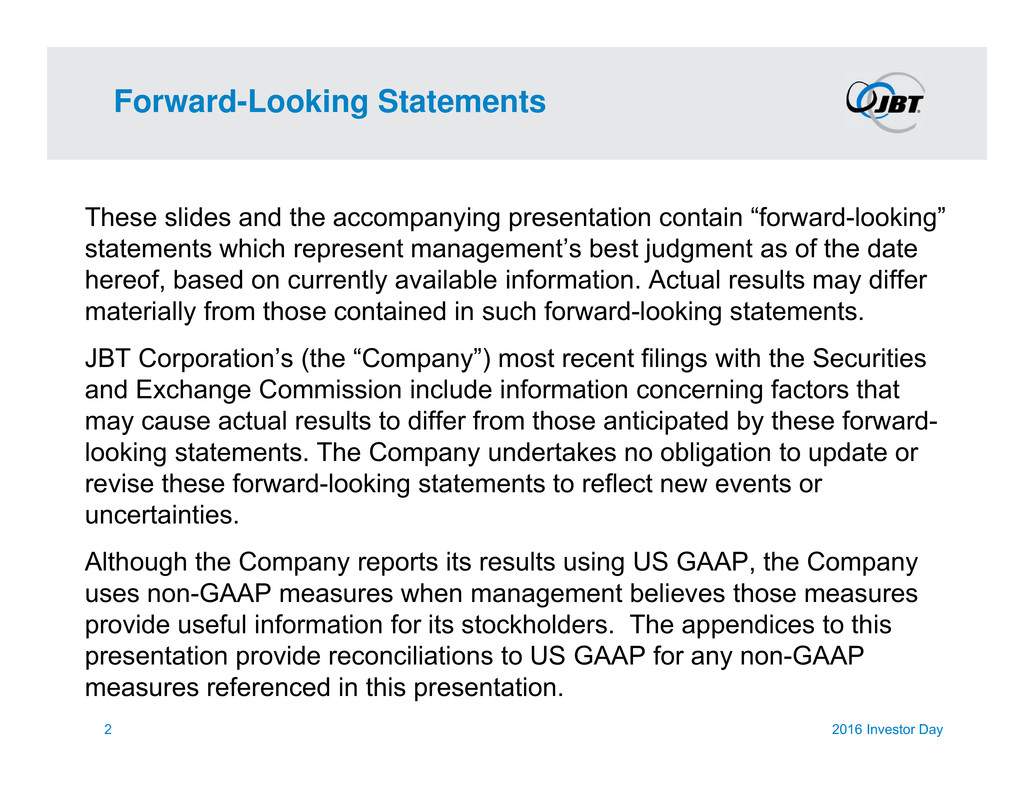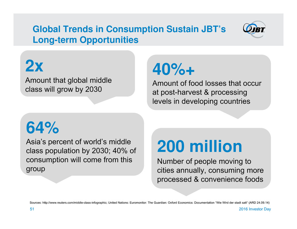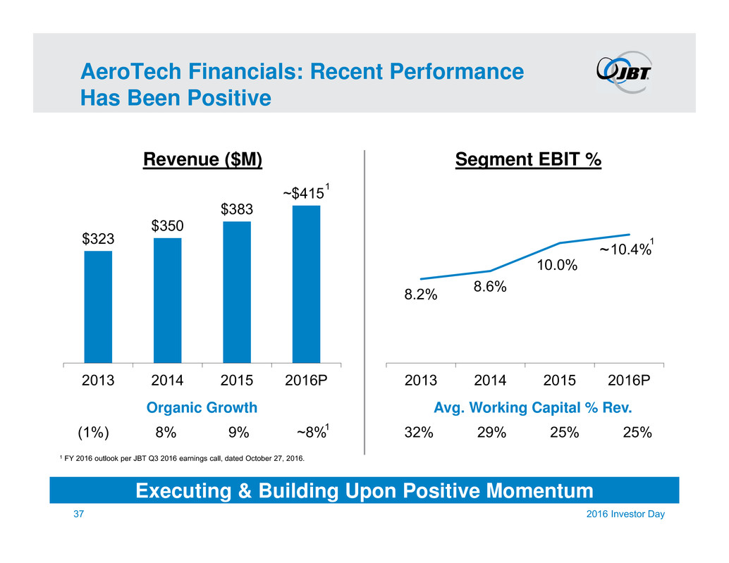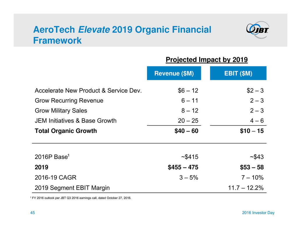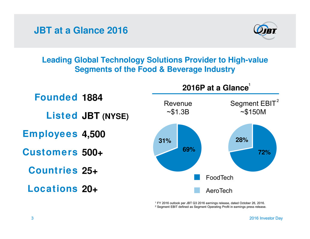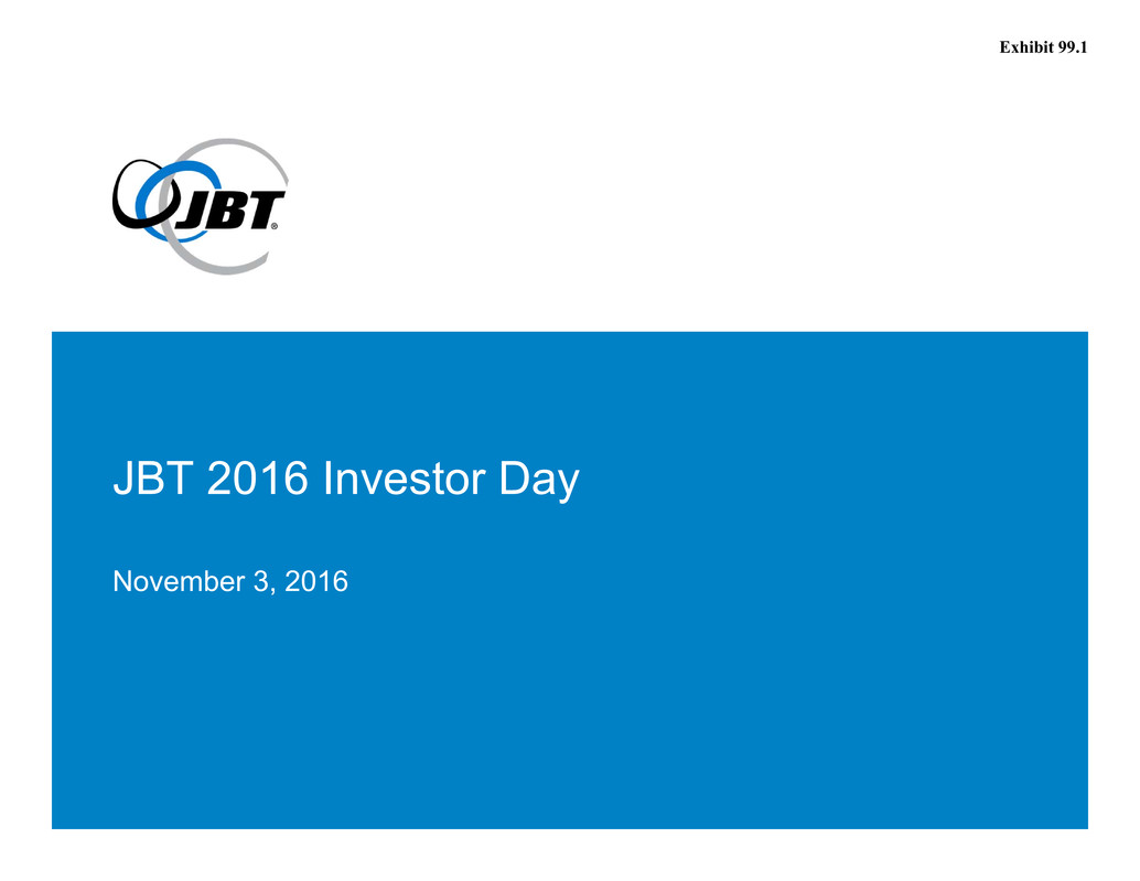 1 FY 2016 outlook per JBT Q3 2016 earnings release, dated October 26, 2016.