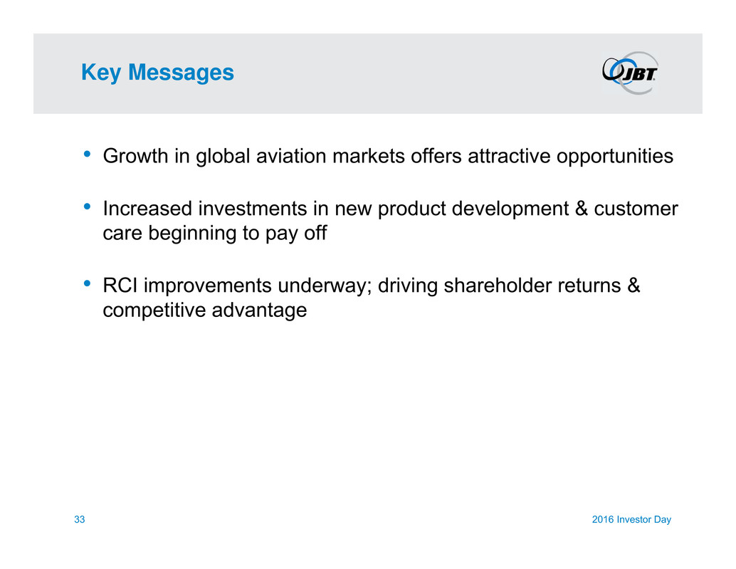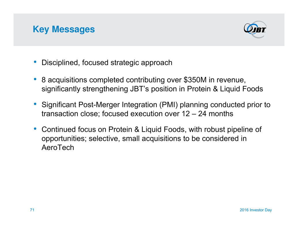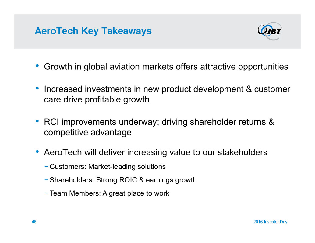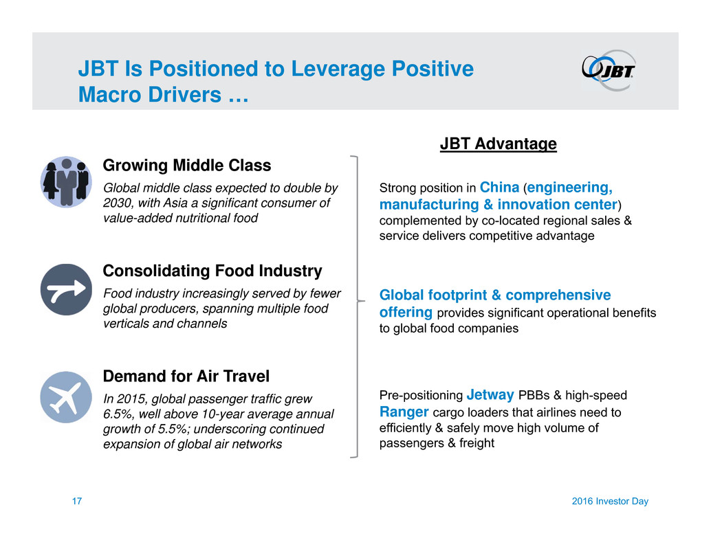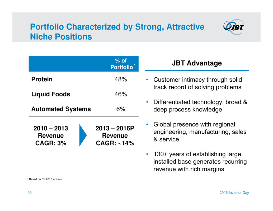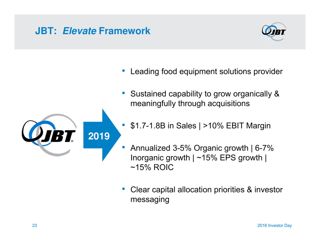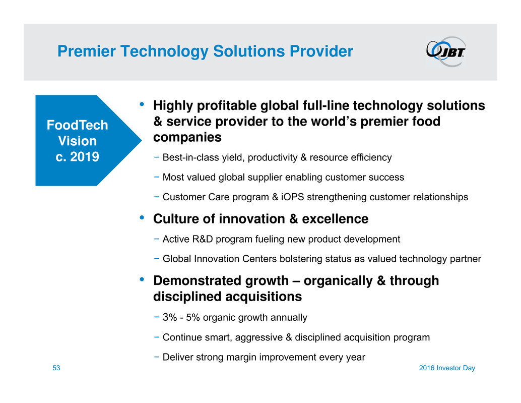 1 FY 2016 outlook per JBT Q3 2016 earnings release, dated October 26, 2016.