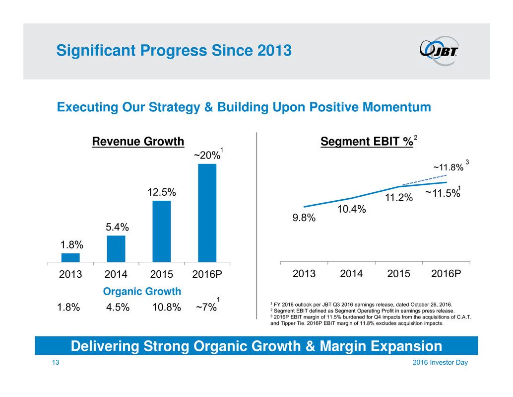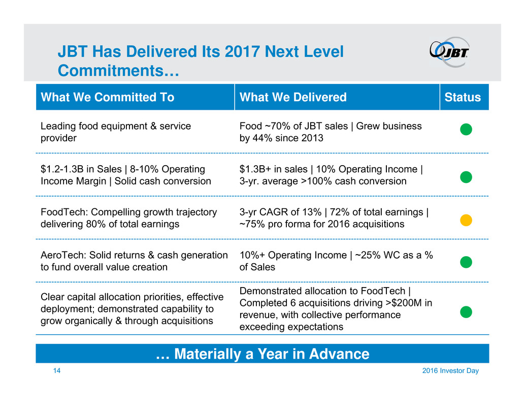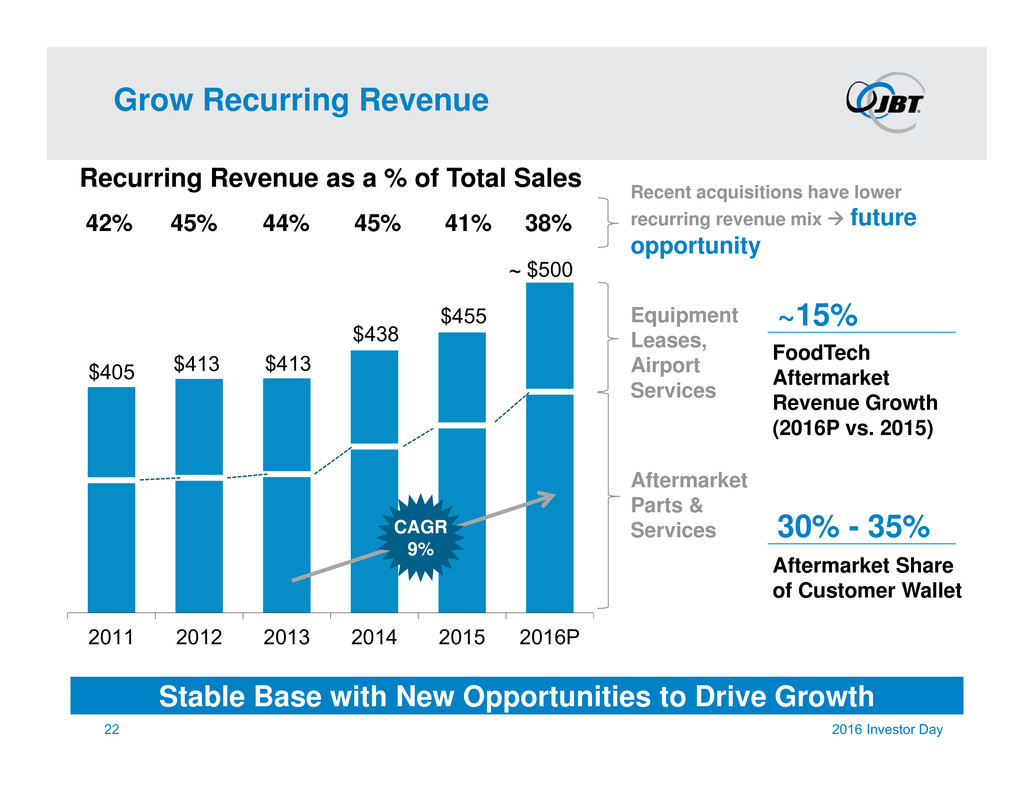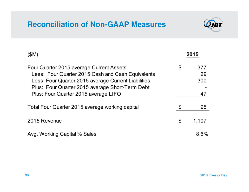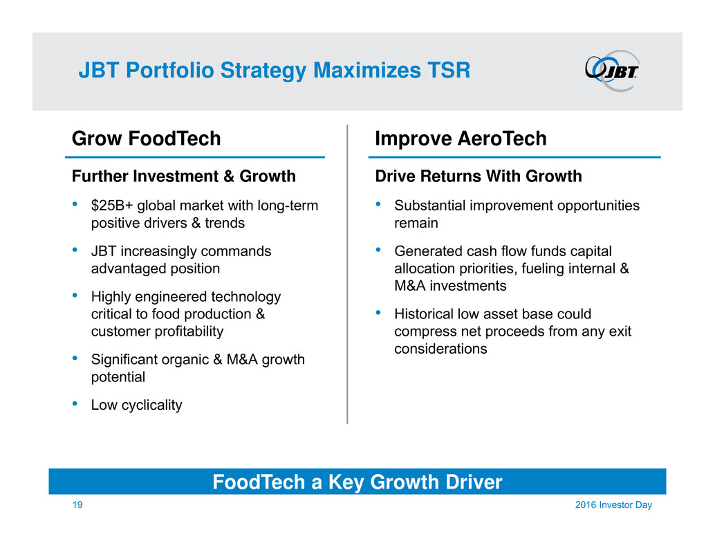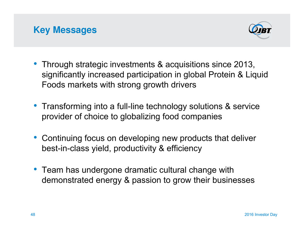 1 FY 2016 outlook per JBT Q3 2016 earnings release, dated October 26, 2016.