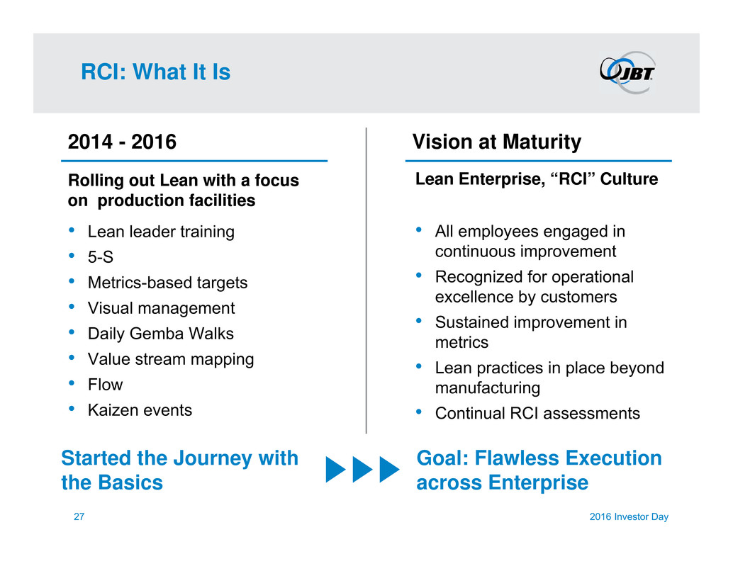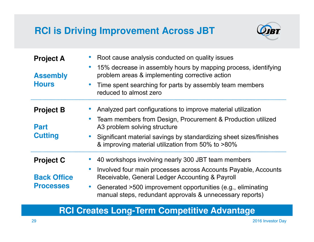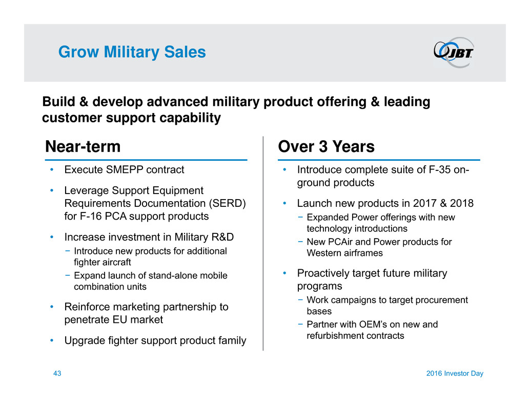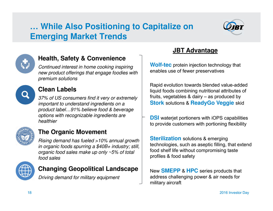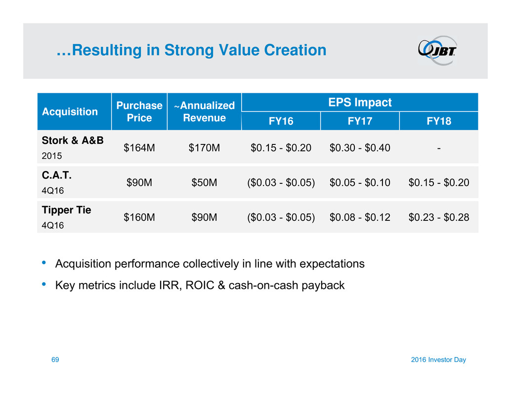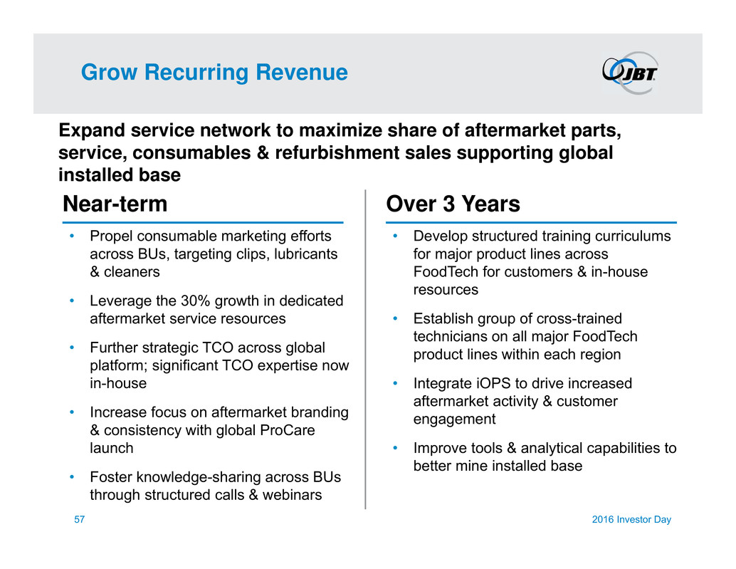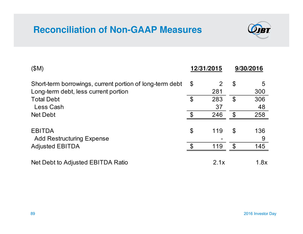 1 FY 2016 outlook per JBT Q3 2016 earnings release, dated October 26, 2016.