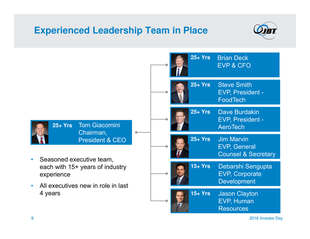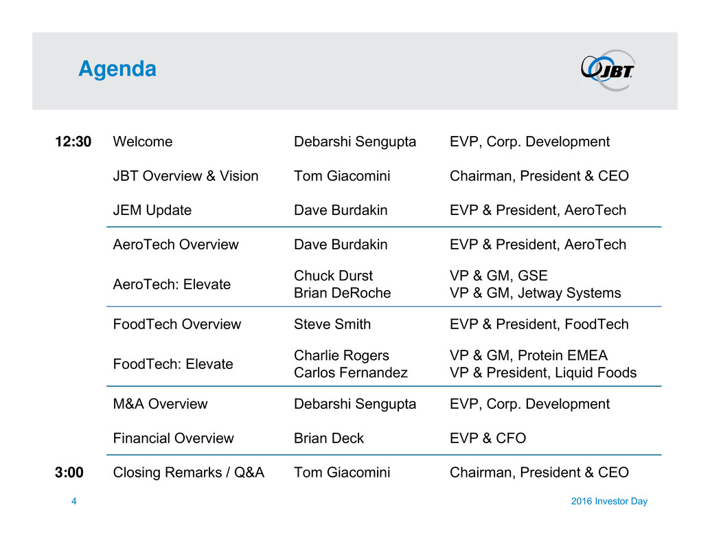 JBT Overview & Vision Tom Giacomini Chairman, President & CEO