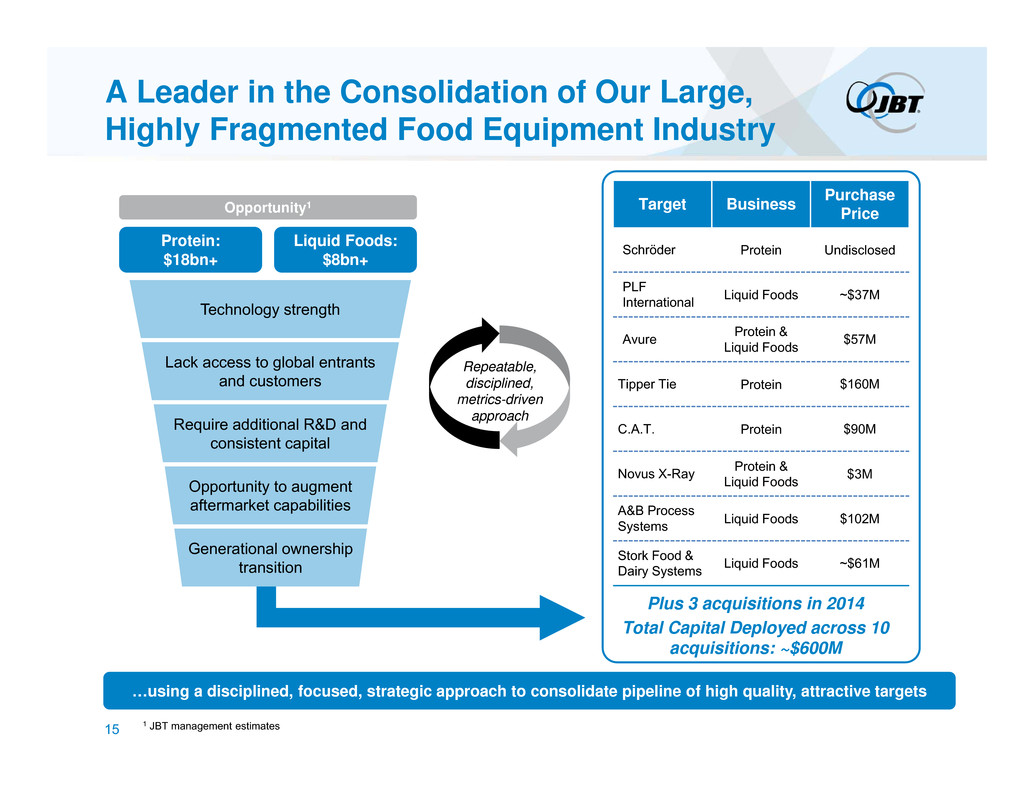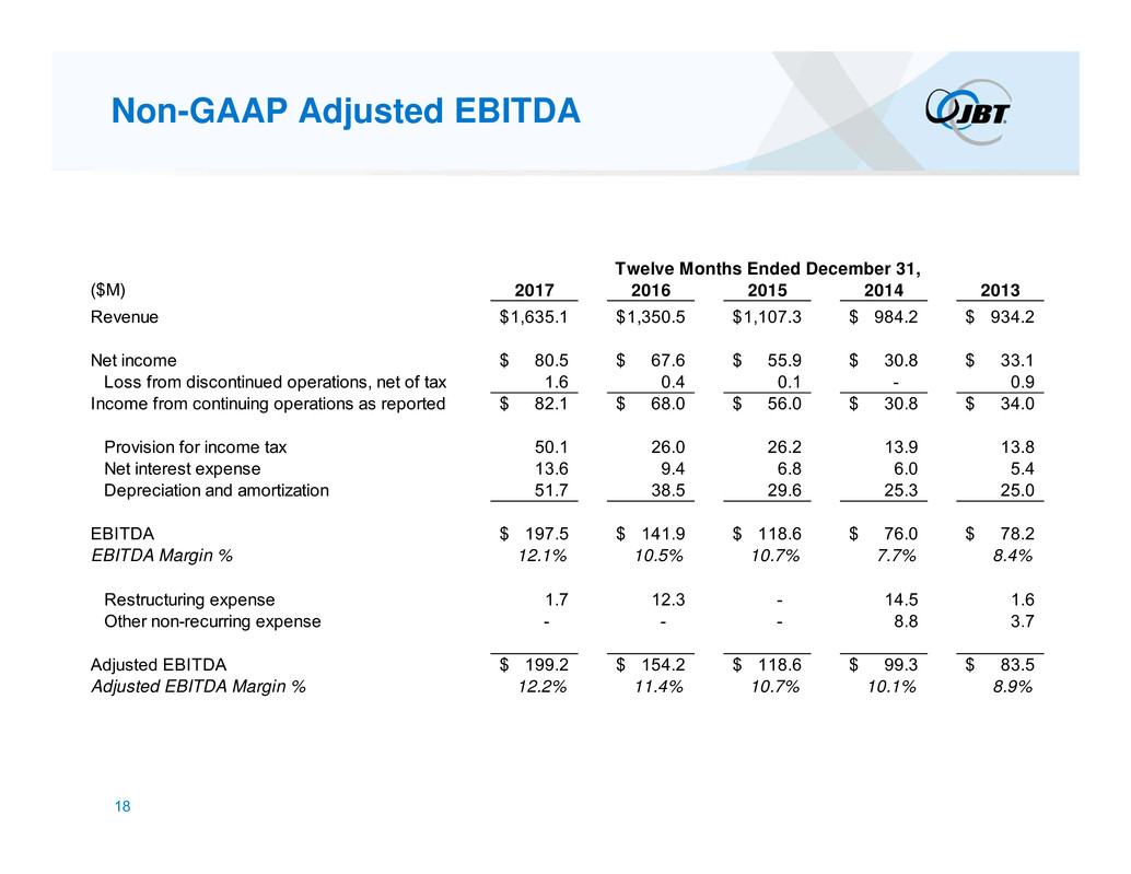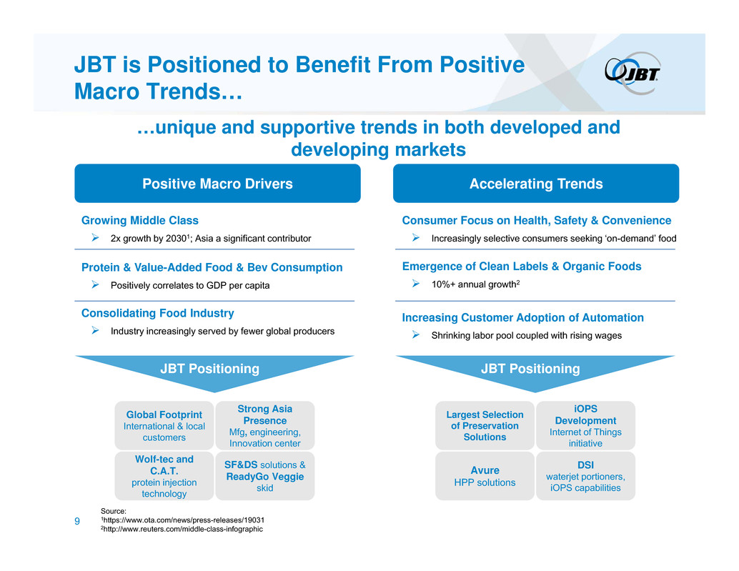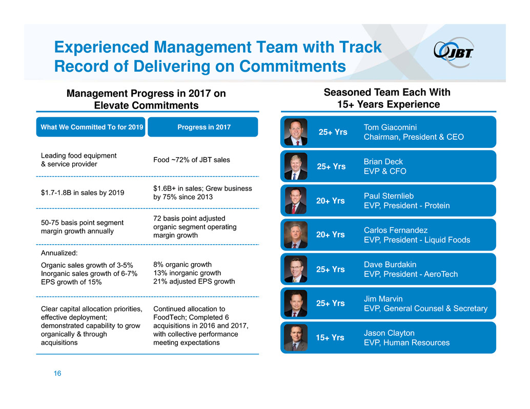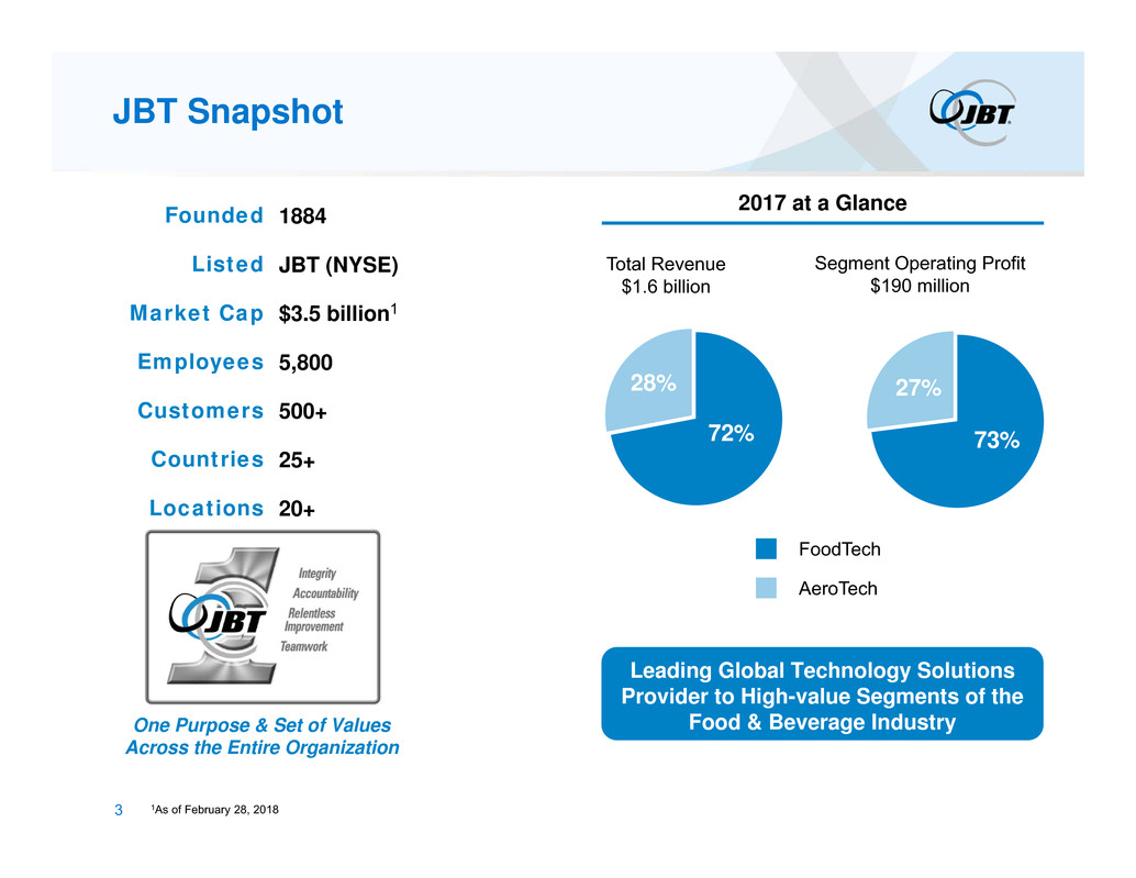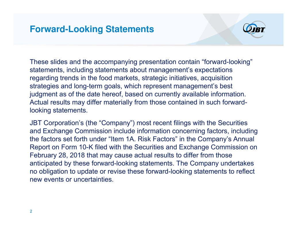 JBT Corporation’s (the “Company”) most recent filings with the Securities