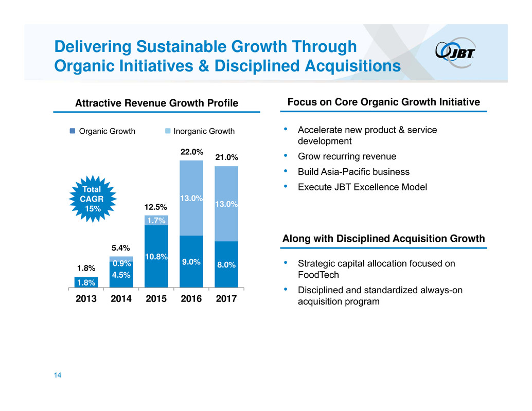 $1.7-1.8B in sales by 2019 $1.6B+ in sales; Grew business by 75% since 2013
