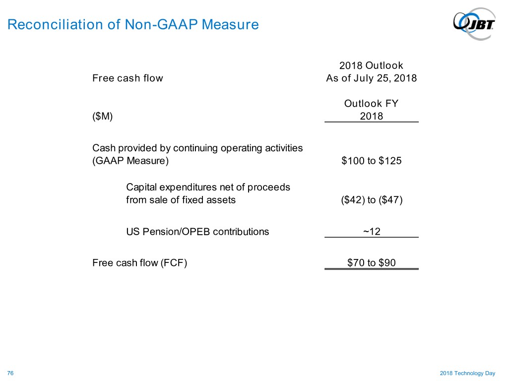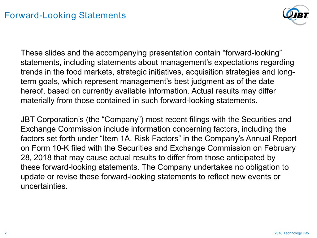 Exhibit 99.1 JBT 2018 Technology Day September 13, 2018