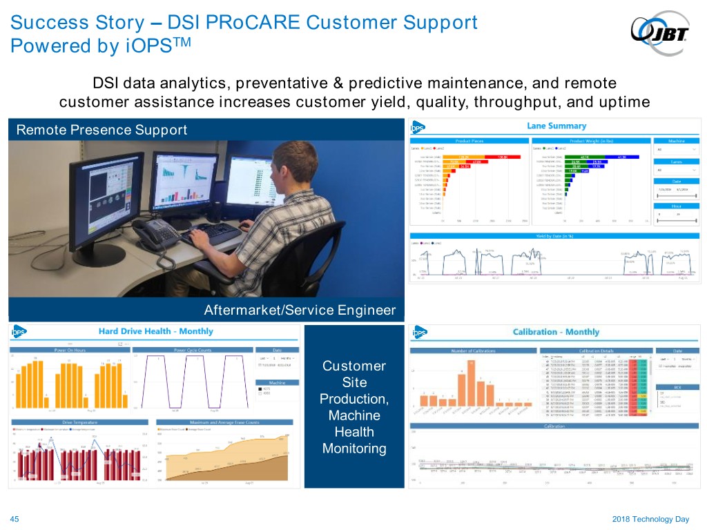 Success Story – DSI PRoCARE Customer Support Powered by iOPSTM DSI data analytics, preventative & predictive maintenance, and remote customer assistance increases customer yield, quality, throughput, and uptime Remote Presence Support Aftermarket/Service Engineer Customer Site Production, Machine Health Monitoring 45 2018 Technology Day