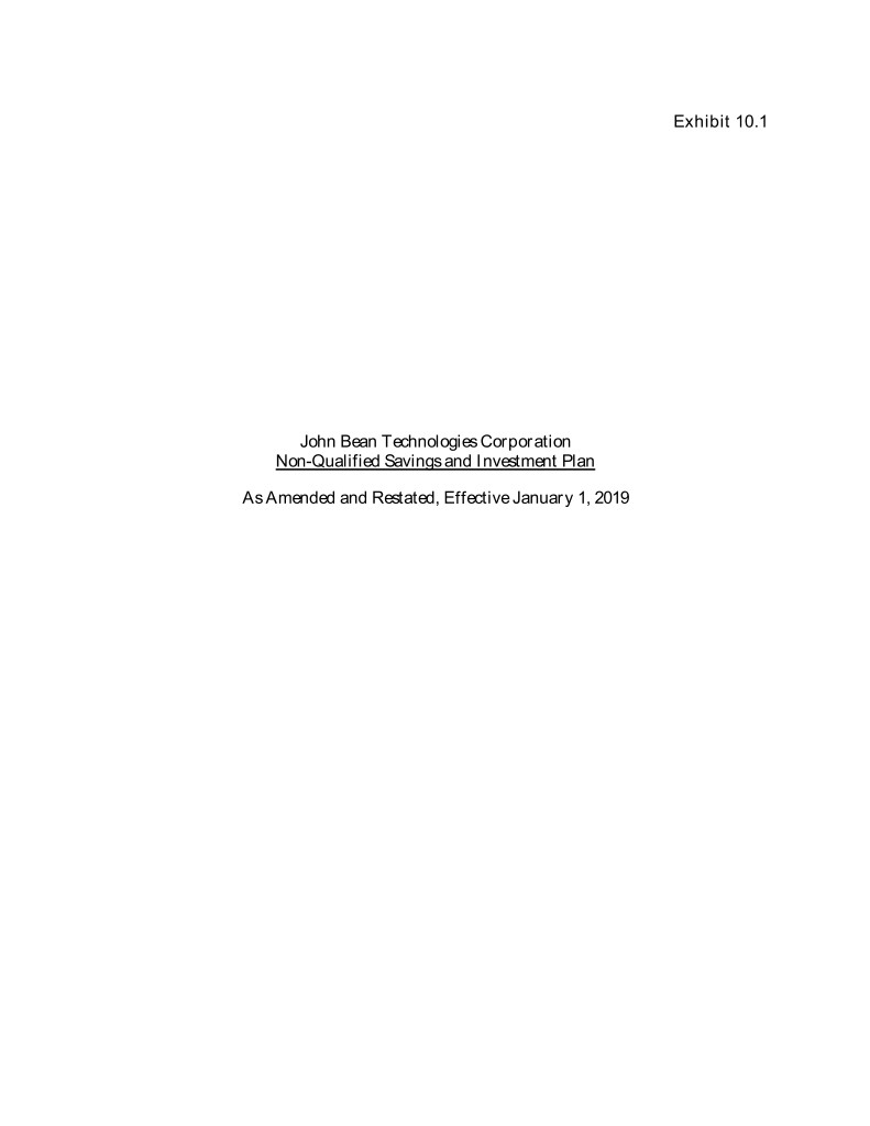 Exhibit 10.1 John Bean Technologies Corporation Non-Qualified Savings and Investment Plan As Amended and Restated, Effective January 1, 2019