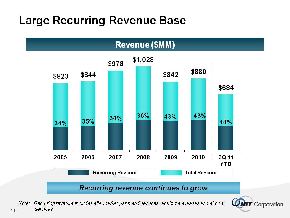 November 9, 2011 > Form 8-K > JBT Marel Corporation