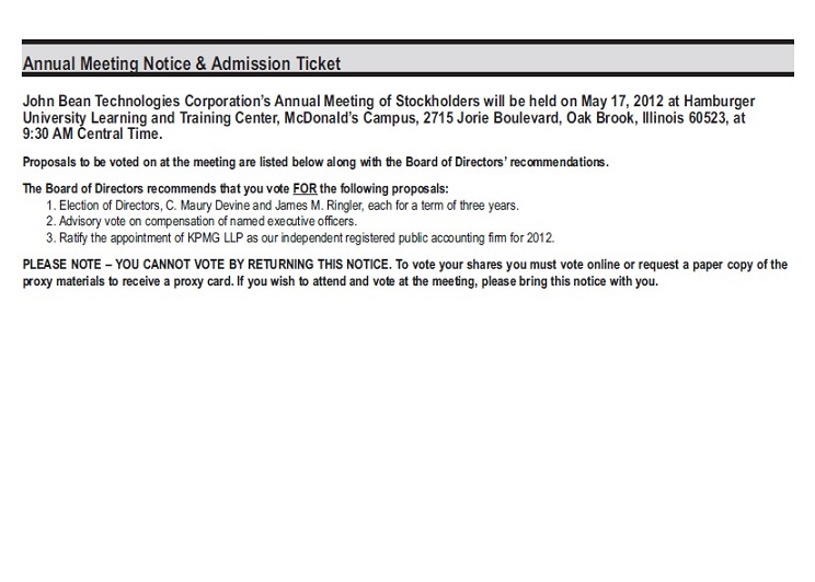 JOHN BEAN TECHNOLOGIES CORPORATION