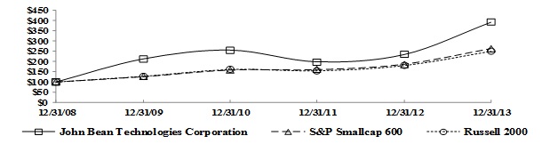The following materials from John Bean Technologies Corporation’s Annual Report on Form 10-K for the year ended December 31, 2013, formatted in XBRL (eXtensible Business Reporting Language): (i) Consolidated Statements of Income, (ii) Consolidated Balance Sheets, (iii) Consolidated Statements of Cash Flows, and (iv) Notes to Consolidated Financial Statements. |