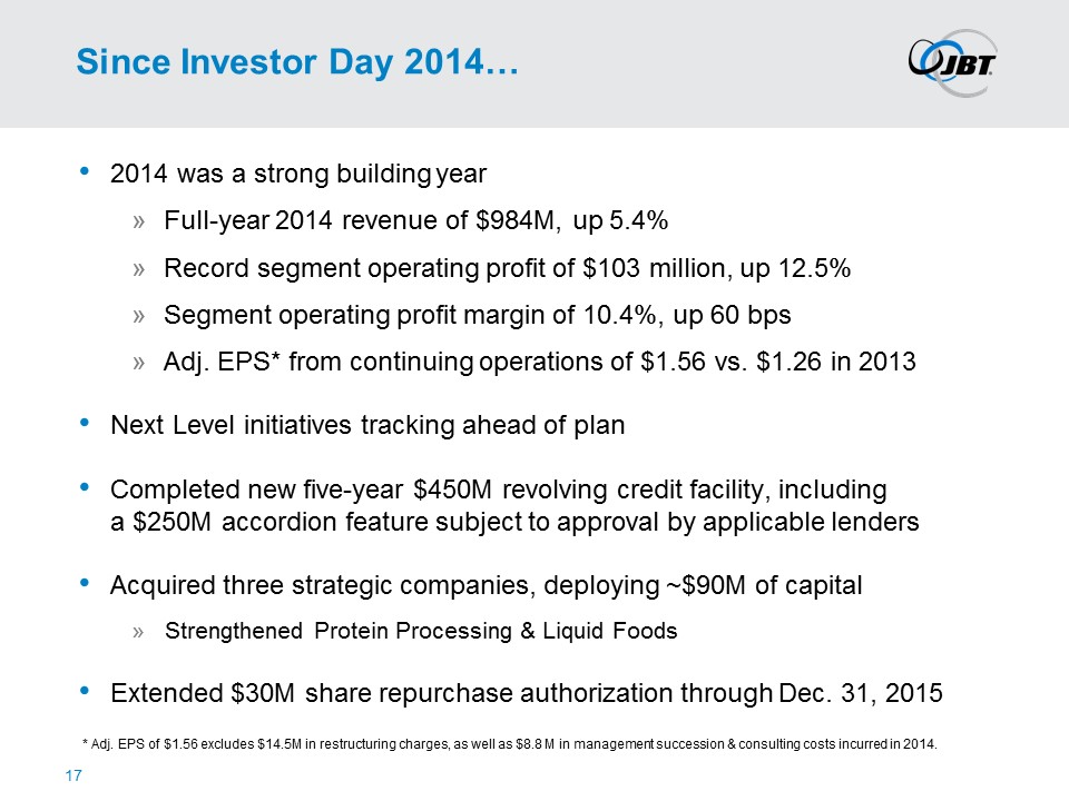 March 5, 2015 > Form 8-K > JBT Marel Corporation